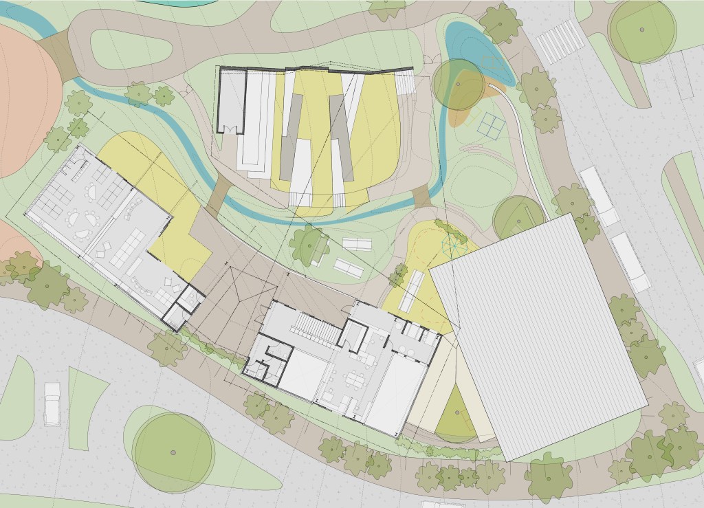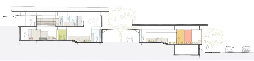 Los edificios cuentan con variedad de niveles adaptándose a la topografía existente, al mismo tiempo que mantienen la accesibilidad para todos, con rampas y facilidades accesibles para capacidades diferentes.